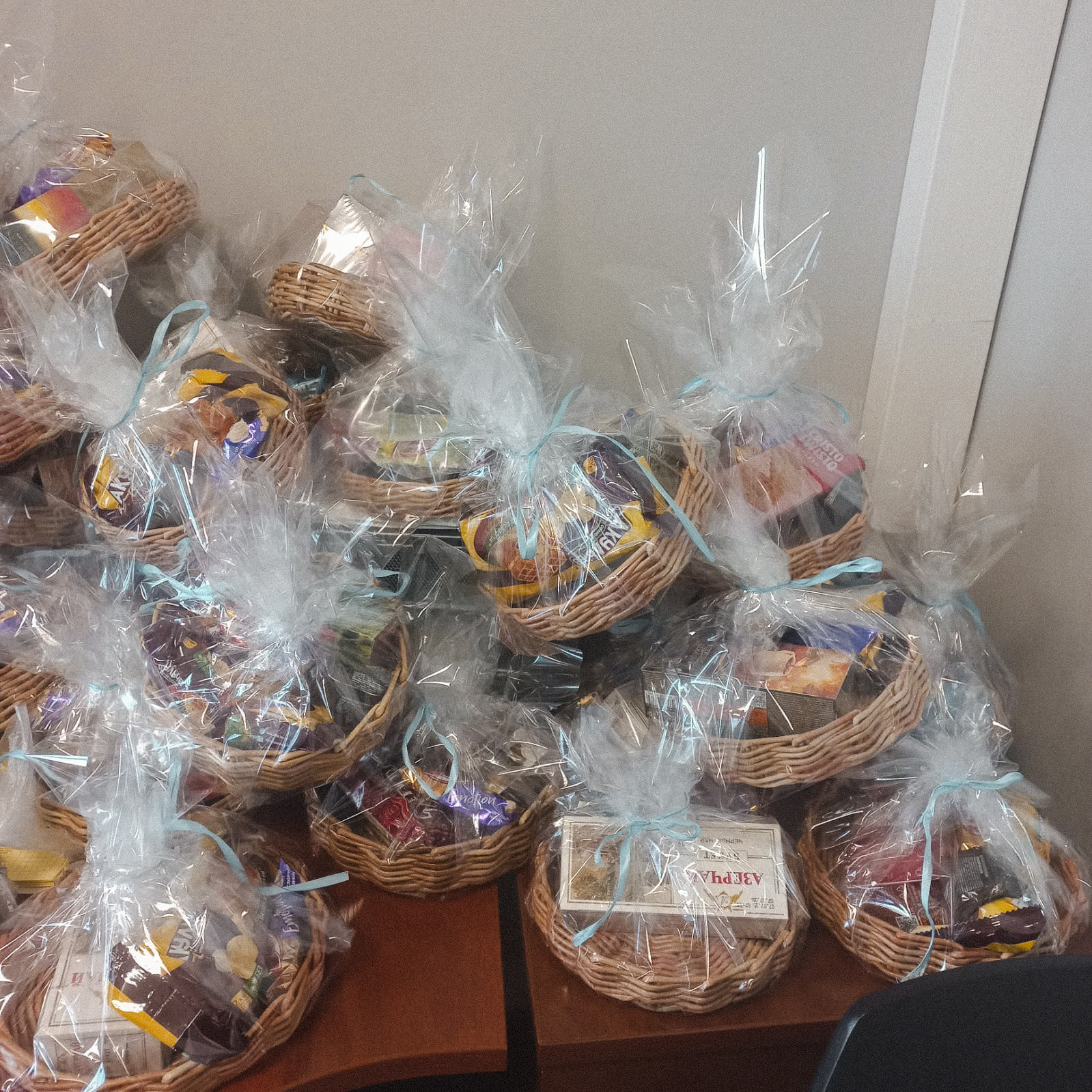 К празднику наш помощник по уходу из Кудрово – Наталья Корякова, не только специалист, но и настоящая мастерица – сплела для каждого из подопечных красивые тарелочки-корзиночки. В каждую мы положили вкусные угощения, аккуратно упаковали – и передали вместе с поздравлениями и улыбкой.